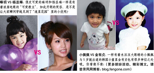 小佩佩VS金有贞:一样有着水汪汪大眼睛的小佩佩与5岁就出道的韩国小童星金有贞也有很多神似之处哦。你看像不像!(更多缤纷活动、精彩博文,请登录凤网博客:blog.fengone.com)