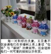 王亚惠说,每每看到这种情景,她都会特别欣慰:“人们因为幸福而结合,但选择分离的理由却有千百个。其实不是每对夫妻都能默契地回应对方,一封信、一杯茶、一次心平气和的沟通,或是能共同体会过去的美好……这些‘小动作’之于婚姻,其实是最好的良药。”