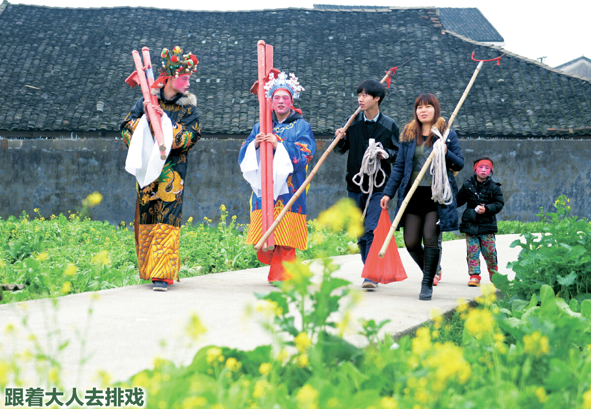连日阴雨之后,天空开始放晴。3月2日,趁着春日好时光,岳阳汩罗市长乐镇的村民们从家里把各种道具服装拿出来,为元宵节“长乐故事会”做准备,连孩子也在一旁不闲着,跟着大人去排戏。每年的元宵节,汩罗市长乐镇都十分热闹,该镇的“长乐故事会”在中外享有盛名,其“抬阁故事、十米高跷、长乐锣鼓”,是我国非物质文化遗产重点保护项目。长乐镇曾入选“中国民间文化艺术之乡”,家家户户玩故事、老老少少是演员成为长乐人的一大特色。 摄影/特约记者 彭宏伟