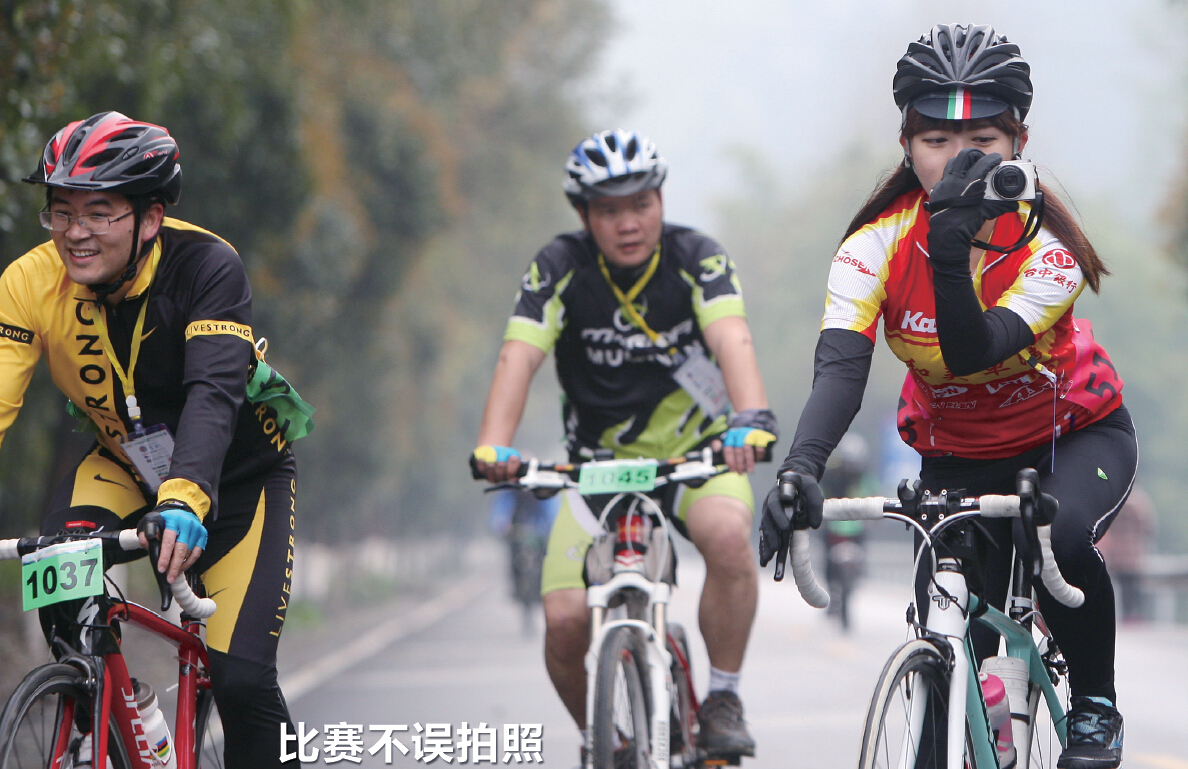 雨后在张家界莽莽大山中进行骑行比赛该是什么感觉?对于上图的台湾美女选手来说,比赛先搁下,忍不住拍张美照再说。
