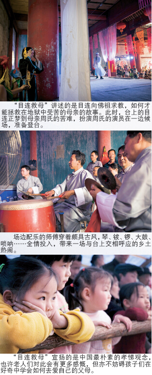原来,“目连救母”总共有48本,要是唱完得花上七天七夜。可如今看戏的人少,演出内容被压缩成了80分钟的“精华版”,这与老人记忆中的感觉相去甚远。