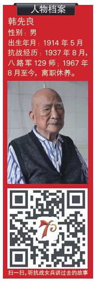 就在记者到中国人民解放军第163医院的病房里采访时,坐在轮椅上的老人韩先良正在注视着电视里播放的《亮剑》。虽然老人耳朵几乎听不见,但通过笔和小黑板,他依旧给我们还原了一个战火纷飞年代的英雄故事……