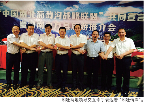 早在6月9日,在长沙举行的2015年“天山梦·湘吐情”湖南人游吐鲁番活动新闻发布会上,吐鲁番市旅游局和中方县人民政府就共同打造“中国南北葡萄沟旅游战略联盟”签署了合作协议。