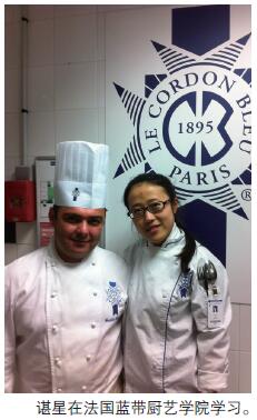 其实,谌星任性选择去学厨艺,并非没有原因。在她很小的时候,就觉得爷爷奶奶做的饭菜非常好吃,而且,非常喜欢这种一家人坐在一起吃饭时的氛围。尤其是有一次,谌星自己做的饭菜获得家人的肯定后,她更是喜欢上了做饭菜。只要回家,她都会自己做饭菜给家人吃。去法国进修金融学时,她开始接触到法国的美食,并一下子被打动了。“我发现,原来美食也可以做成艺术。”谌星说,此前,自己一直不知道自己想要什么,就算学金融,也并不是自己最爱的。而从此时开始,她坚持要学厨师,父母和家人自然反对,在中国的父母心中,这两个职业的差距实在太明显了。但是,铁了心的谌星却开始“威胁”父母:“如果你们不让我学厨艺,我金融专业毕业后,就去非洲做志愿者。”至此,父母只好顺从。