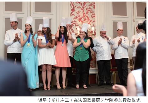 谌星自从学厨艺后,再也没有缺课,每节课都坐在前面,哪怕再多的苦和累都默默承受。两年的学习结束时,她在法国蓝带厨艺学院全年级综合考试中取得了全年级第三名的成绩,获得了学院的奖章,而且进入了学院的宣传手册。有同学说她“或许是中国第一个进入学院宣传手册的女孩”。