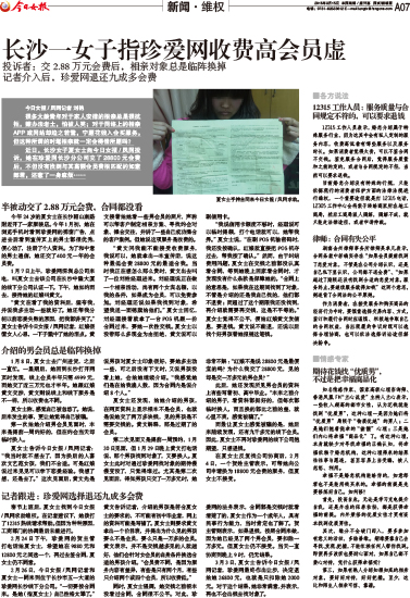 ·长沙一女子指珍爱网收费高会员虚