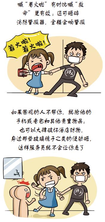 2、入住后,应看清酒店安全出口以及消防报警器的位置。万一遇到陌生人袭击,可以砸消防报警器,引发消防警报,房里的人统统跑出来,围观人员迅速增多,利于脱险。