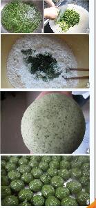 艾草焯水的时候可以加点小苏打,可以让颜色更绿。