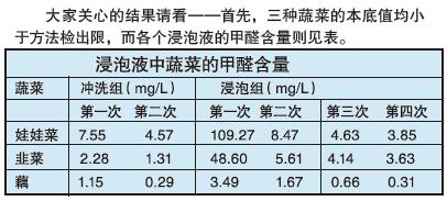 而浸泡组的蔬菜则依次于4杯2L水中浸泡,每杯浸泡5分钟,取4次的浸泡液测定其甲醛含量。