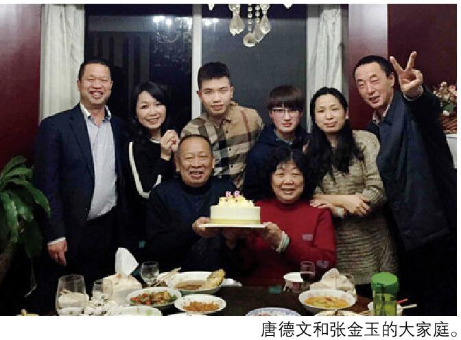 唐德文的父母去世得早,唐德文夫妇一家、张金玉的姐姐一家,再加上张金玉的父母,一开始就住在一起。其后几经工作调动,一家人也从未分开过,不管工作多忙,一家人总是坚持在一起吃饭。