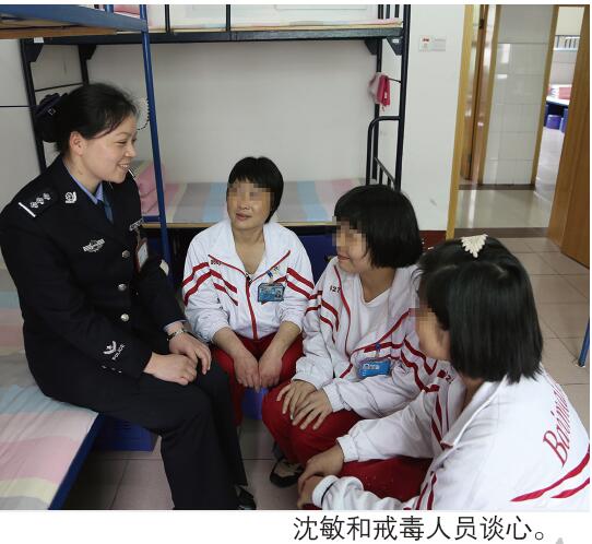 沈敏说,从警十多年,对她而言工作最大的肯定不是那些称号和荣誉,而是从她手上出去的强戒人员不再复吸了。她给所有强戒出去的人员建立一个微信群叫“温馨的家”,经常在生活和工作上和她们沟通交流,帮助她们树立信心。群员中,有人已经坚持8年不再复吸。