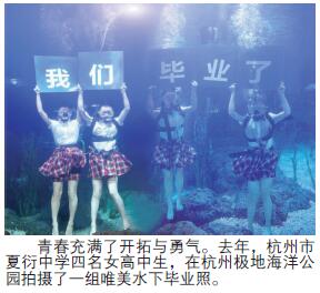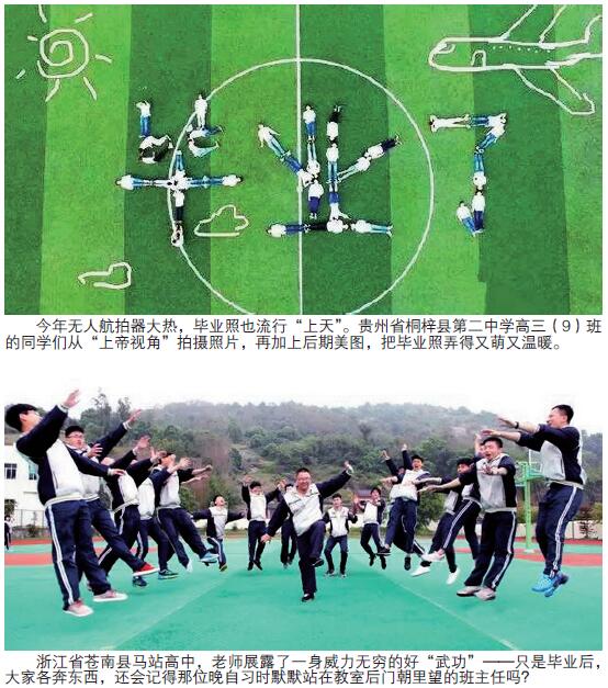 小清新照、文艺照、抛帽子照、学习场景照、跳跃照、奔跑照、反串照,还有今年大热的“航拍照”……相比十年前、二十年前、四十年前,毕业照的变化就是青春史的变化。时代不同,青春如是。通过毕业照来“炫技”,也用这份不一样的创意和个性,让我们换个角度“致青春”——道一声珍重,也期待在更好的未来与你相遇。
