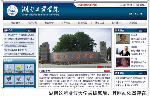 而令人想不到的是,给大家提供这种方便以免上当的竟然是一家民间教育服务机构。日前,“上大学网”就公布了第五批中国虚假大学警示榜,涉及16个省份的73所虚假大学。实际上,该网站近4年共“挖”出了四百多所虚假大学,其中,湖南有7所。