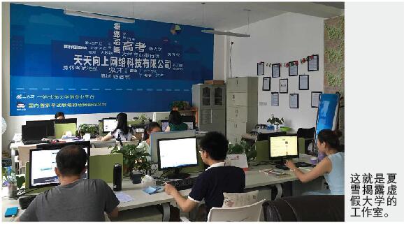 2013年,夏雪开始做“上大学网”。做这个网站的初衷,是为了给很多高考生和家长提供一个可以选择大学专业和志愿的平台。“在做‘上大学网’的过程中,我发现了虚假大学这个现象,而且还为数不少。”曾经做过调查记者的本能习惯和媒体人的责任感,让夏雪觉得应该要把这些信息发布出来。