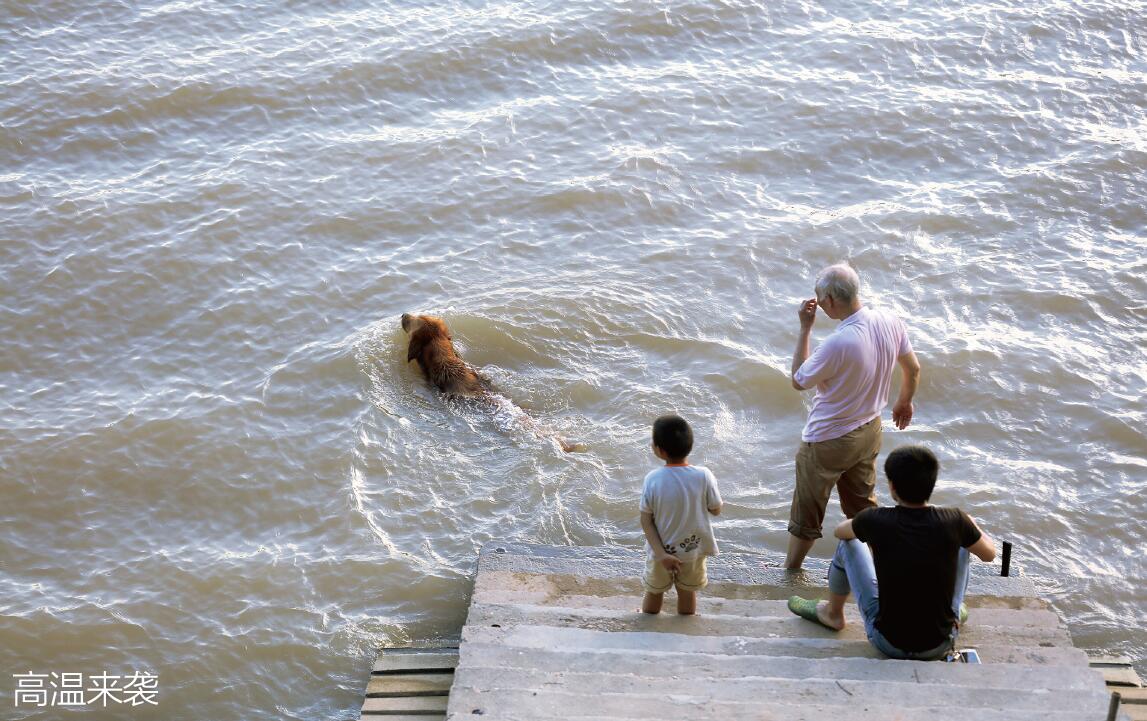 随着6月21日二十四节气中的夏至到来,长沙拉响了今年首个高温预警,未来5天都是35度以上的高温相伴。由于前几天的大到暴雨,致使湖南不少地方发生洪涝灾害,大河小河超警戒水位,因此,与往年不同的是,跳进河里游泳来避暑的人几乎不见了,可以看到的是这样的景象——6月22日傍晚,长沙湘江河畔,一条狗勇敢地游进了水位高涨的湘江,老人、孩子和青年在岸边观看着。