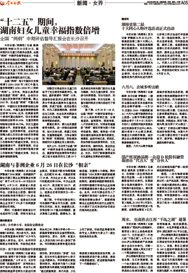 ·“十二五”期间,湖南妇女儿童幸福指数倍增