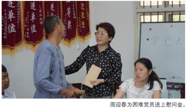 周迎春一行看望慰问了4名女党员和3名困难党员,并听取了驻村扶贫工作情况的汇报。周迎春认为今年的扶贫工作思路清、措施实、效果好,从内到外给人带来耳目一新的变化。随后,周迎春传达了省妇联关于开展“巾帼心向党”主题教育活动文件精神,要求全体党员要学习和弘扬向警予精神,坚定扶贫脱贫决心,树立信心,进一步明确工作目标;要发奋图强,不甘人后,进一步扎实工作,积极投身于脱贫的主战场;要克己奉公,无私奉献,进一步树立表率作用。
