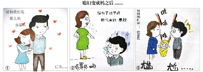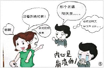 想找机会和媳妇沟通,但一直慑于媳妇的脾气,于是,他只好通过漫画来展示了。