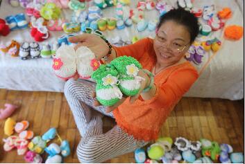 家住长沙市韶山路金三角花园小区的欧佩琼女士是一名手工编织爱好者。近日,心灵手巧的她用毛线编织了近百双可爱的童鞋,每一双鞋子的技巧和款式都不一样。通过长沙市天心区妇联的牵线搭桥,热心公益的欧佩琼联系到了市残联,决定把自己的毛线编织技巧免费教给残疾人,同时把这批鞋子捐赠给市残联作为教学样品。