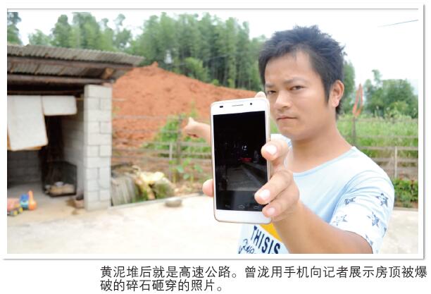 “离我们家不到15米远的一户村民,他家也没在拆迁红线范围内,甚至离施工路面距离比我家更远,但因为住房地势高,离爆破山体近,就得到了20多万元搬迁补偿费。”曾泷说,“其实,我们两家离爆破山体的距离差不多远,而且,我家地势低,更容易被碎石砸到,为什么没有任何补偿?被砸破的房屋、电器,浸坏的水田只能算自己倒霉?这不公平。”