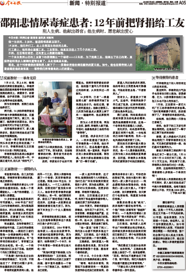 ·邵阳悲情尿毒症患者:12年前把肾捐给工友