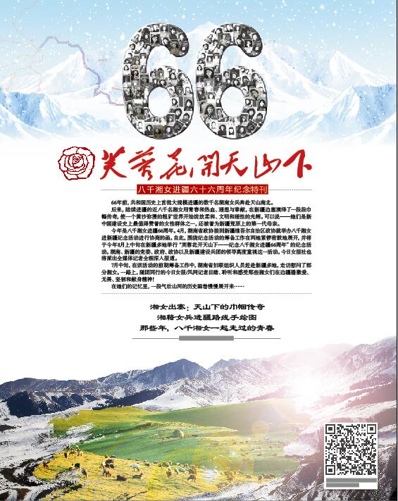 今年是八千湘女进疆66周年。4月,湖南省政协接到新疆维吾尔自治区政协就举办八千湘女进新疆纪念活动进行协商的函。自此,围绕纪念活动的筹备工作在两地紧锣密鼓地展开,并将于今年8月上中旬在新疆多地举行“芙蓉花开天山下——纪念八千湘女进疆66周年”的纪念活动。湖南、新疆的党委、政府、政协以及新疆建设兵团的领导高度重视这一活动。今日女报社也将派出全媒体记者全程深入报道。