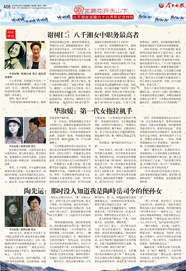 发刊日期:2016年08月05日>总第2659期>A08>芙蓉花开之湘女讲述