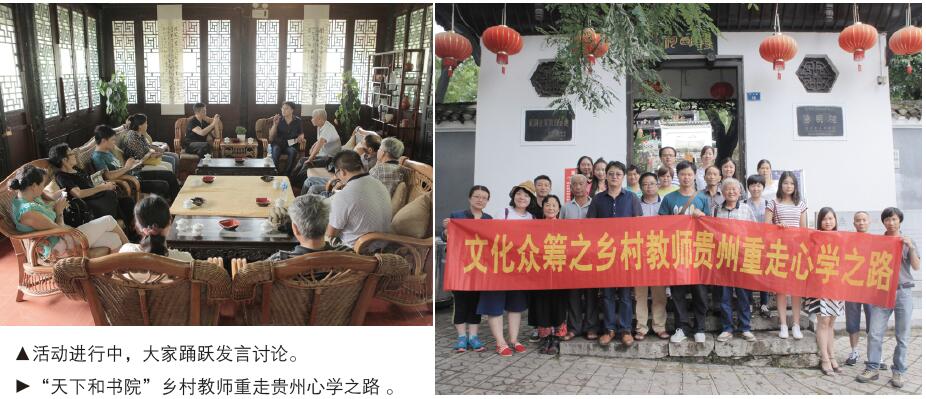 “布道阳明洞,百世仰高风。知行求合一,万物一体同……吾年七十六,愿充小学生。”今年8月15日至18日,天下和书院邀请10位乡村教师重走贵州心学之路,76岁的义务乡村国学教师陈志明即兴赋诗一首表达了自己的激动之情。此次心学之路还礼请天下和书院讲师、《知行合一王阳明》作者度阴山在阳明祠开坛,讲述王阳明的“龙场悟道”及其了悟“心即理”、“致良知”、“知行合一”的人生历程。由于在座的都是来自教学一线的乡村教师,现场,关于乡村教育的话题讨论尤其热烈。