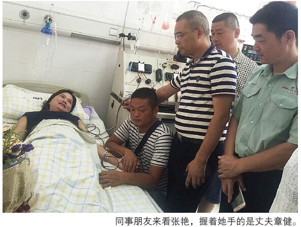 9月1日,张艳在章健的陪同下来到湘雅附三医院,开始每天早八点和晚八点打两针动员剂。她的同事和朋友们得知后,都陆续来看她。张艳说:“我其实挺不好意思的,因为我休假20多天,工作就要分给别的同事,很感谢领导和同事的支持理解。其实我觉得我真的是做一件应该做的事。”