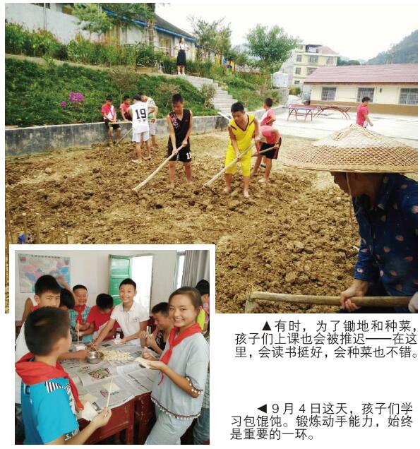 除了心理建设,劳动在荣众留守儿童学校被提到了极高的位置。学校没有清洁工,所有的卫生都是孩子们自己打扫。瞿扬众甚至在校内校外开辟菜地,让每个班的孩子都种菜。种出的菜由学校食堂按市场上的价格双倍收购,得来的钱作为孩子们自己的班费。