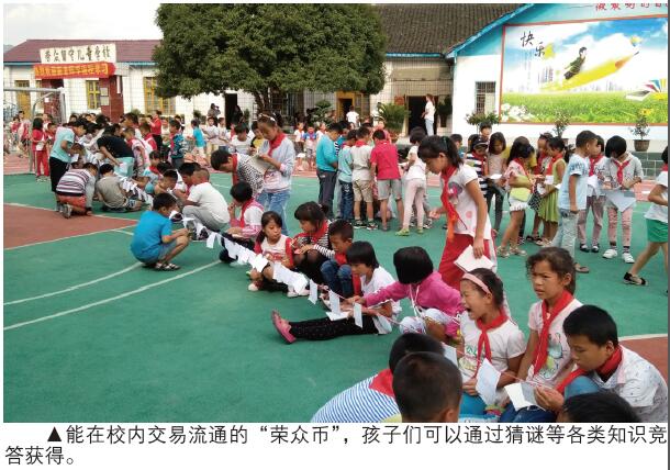 除了每月一天的月假和寒暑假,孩子们不能离开学校,而学校里的“消费”,也用不上人民币——这里能流通的货币,叫“荣众币”。这是一种校内发行的虚拟货币,且只能通过知识问答获得,并在每月举行的跳蚤市场上流通。孩子们可以在市场上自由买卖,曾有一个很有商业头脑的男生在市场办抽奖,两个荣众币抽一次,一等奖是一本旧书。