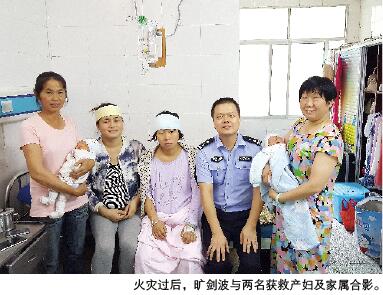 到了三楼,旷剑波用强光手电发现了还没来得及转移的产妇颜艳和周惠婷。“这还有人!”旷剑波大喊,几位闻声而来的消防官兵和民警一道,把两名虚弱的产妇抬下了楼。“当时,屋子里的烟已经很浓了,她们脸上都被熏得漆黑。”旷剑波不忘安慰产妇,“我一直告诉她们,没事的,很快就安全了”。