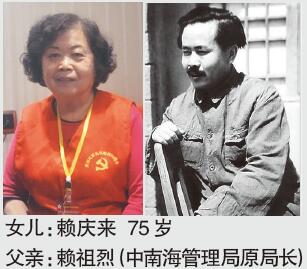 “父亲参加了五次反‘围剿’战斗。红军长征开始时,在直属队的他本来也要一起长征,但因为父亲突然患恶性痢疾,只得留下,坚持在赣南打游击战争。”赖庆来告诉记者,后来她父亲还跟红军失去了联系,但他一直没有放弃寻找组织。1937年7月抗日战争爆发后,赖祖烈从家乡永定县秘密来到八路军南京办事处,找到了叶剑英、李克农、钱之光等人,通过政审,参与《新华日报》创刊筹备工作。后来,他调任八路军武汉办事处经理科科长,负责筹集、管理军饷和物资。后又辗转至衡阳、重庆。