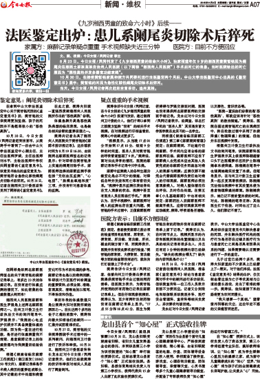 ·法医鉴定出炉:患儿系阑尾炎切除术后猝死