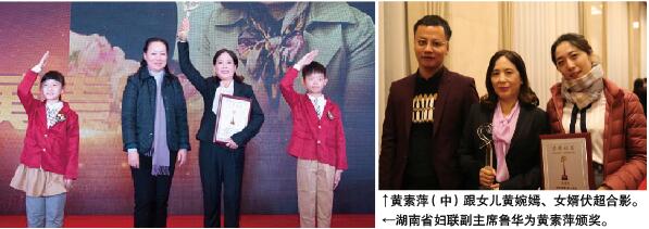 11月9日,在湖南省会长沙,黄素萍荣获“2015年感动湖南人物”称号,湖南省妇联副主席鲁华为黄素萍颁奖。