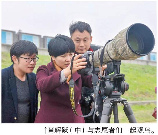 从新加坡回来后,肖辉跃从此拒绝食用任何野生动物。2014年,肖辉跃加入了长沙市野生动植物保护协会,开始了她的鸟类保护之旅。洞庭湖、岳麓山、团头湖、江湾湿地、金洲湿地……再到江西鄱阳湖、河南黄河湿地、广西红树林湿地、辽宁老铁山、海南尖峰岭、东部诸省沿海滩涂……肖辉跃把湖南乃至全国各地的鸟类栖息地跑了个遍,亲眼观察并记录各种鸟类,写下了二十万字的观鸟笔记。在肖辉跃的影响下,她身边出现了一大批爱鸟人士,其中还有很多孩子。在肖辉跃看来,孩子是候鸟保护的希望和未来。