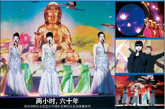 此次佛教音乐晚会分为《法愿》、《传灯》、《欢喜》三大篇章,短短两个小时里,通过独唱、歌伴舞、情景剧、佛教仪规表演等多种形式,为现场一千八百余名观众献上了一场艺术盛宴。