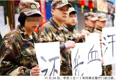 原来,辍学后,李然和母亲去了广州,在姑姑工作的工厂“帮了一段时间的忙”。之后,李然回到了耒阳,并进入大本营军旅主题餐厅,用蒋涛的话来说是“当服务员”。