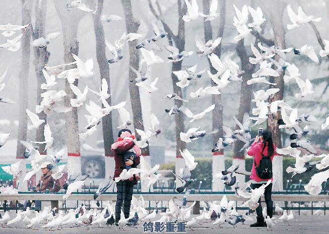 尽管连日来北方有雾霾,但南方大部分地区空气质量优良,这两天随着雨水的加盟,空气质量依然不错。据保健专家提示,早起要注意清淡,少食刺激性食物,可吃些面包、牛奶、鸡蛋等,吃至半饱后到户外进行晨练,这样可以开启美好的一天。图为近日西安街头市民在晨雾中与鸽群共处,享受美好时光。