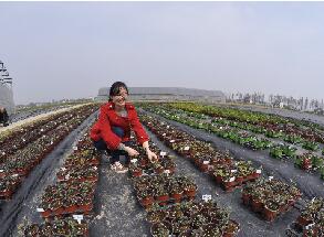 虞越打理园子里的植物,就像对待孩子一样细心。记者留意到,每个盆栽的泥土里都插着不同的牌子,上面写着“卢森堡公主”、“玛格丽特”、“提拉米苏”等名字。虞越介绍说,这些是从国外引进的花苗。走在园地里,虞越指着路边放着的一排花盆告诉记者:“这些是灯笼花,我把它们放在铁丝网下边。等以后长开了,爬满整片网,特别好看。过段时间天气暖和,花都开了,整个园子就会不一样了。”虞越看着自己的“花卉王国”,信心十足。