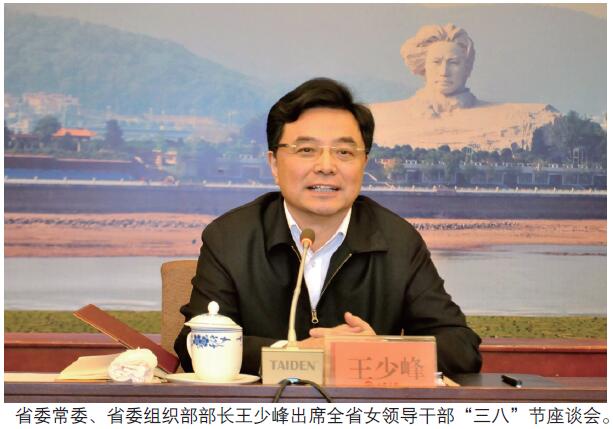 王少峰首先向全省广大妇女同胞和全体妇女工作者致以节日祝贺和亲切问候。他指出,女干部是党和国家治国理政的重要力量,充分发挥女干部作用,对建设中国特色社会主义伟大事业、推动我省经济社会发展、促进妇女事业进步具有重大意义。女干部要在大局大势中准确把握妇女发展的历史方位、肩负的重要使命,把个人的发展进步融入到全省发展大局中,在推动省第十一次党代会精神落实落地的生动实践中展现担当作为、体现人生价值。