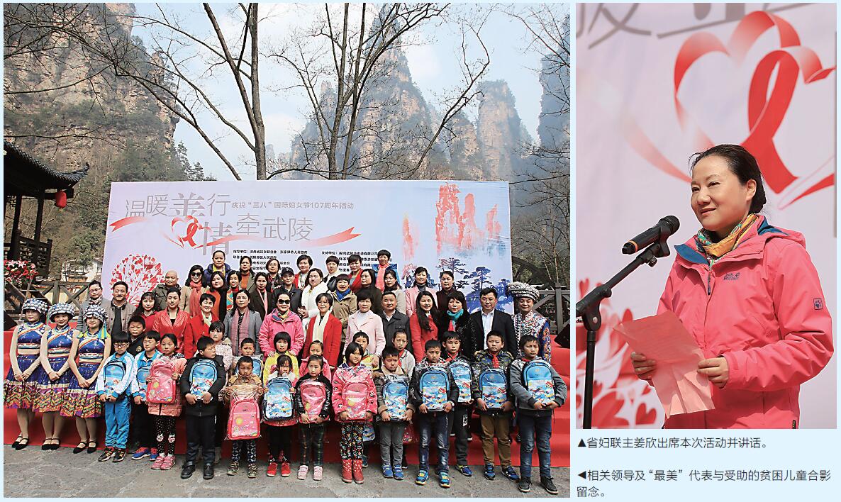 “曾经我也是一个家境贫寒的孩子,受到了社会的爱心帮助后,才有了现在的模样。这次来到武陵源参加三八节活动,看到这些山里的孩子后,我想以后能长期帮扶这些孩子,希望他们的明天同样能精彩。”湖南“最美家庭”代表、今日女报社首席编辑谭里和说。