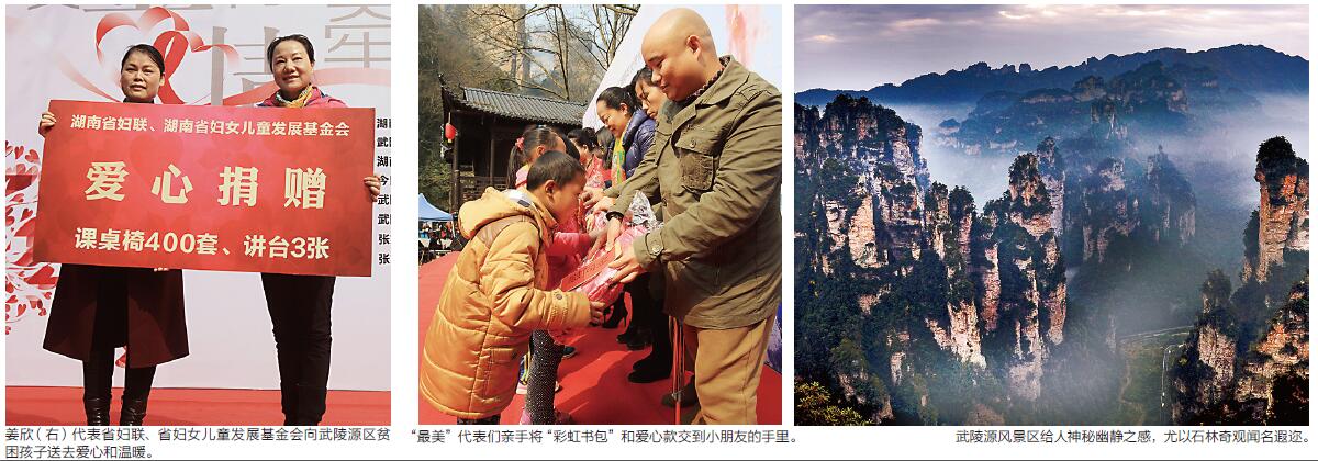 “温暖善行”是由省妇联主导,省妇女儿童发展基金会、今日女报/TOP旅行联手打造的公益项目。项目利用周末或节假日,组织亲子家庭以自驾游的形式,前往湖南省内经济欠发达地区,让城市的孩子们体验乡土生活。同时也积极响应省委省政府扶贫攻坚号召,汇聚社会各方面的爱心与力量,共同关爱贫困、留守妇女儿童,促进当地旅游产业发展。值此“三八”国际妇女节之际,此次“温暖善行·情牵武陵”活动通过对武陵源区相关学校进行捐赠,慰问贫困儿童,进行“一对一”的长期帮扶等一系列活动,将扶贫、扶智与绿色旅游有机结合,将持续为当地输送温暖与正能量。