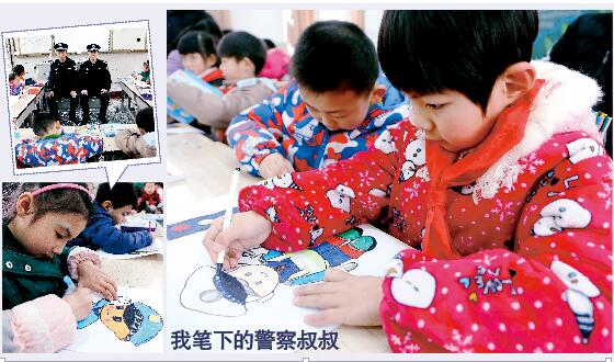 3月14日,是国际刑警组织确定的“世界警察日”。我国于1984年加入国际刑警组织,公安部于2004年起将3月14日定为我国的“警察日”。图为3月13日,江苏省海安县实验小学一年级的一名美术老师邀请两位派出所民警当起了模特,孩子们则以“我笔下的警察叔叔”为题给民警画像,在互动中加深了解,也更加理解、尊重警察这个职业。
