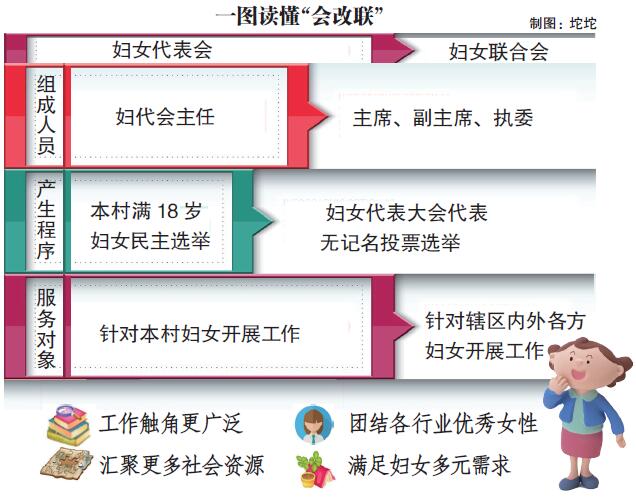 今日女报:村(社区)的“会改联”,是此次妇联改革中比较引人关注的地方。从“妇女代表会”到“妇女联合会”,这里面有何区别?改变的究竟是什么?