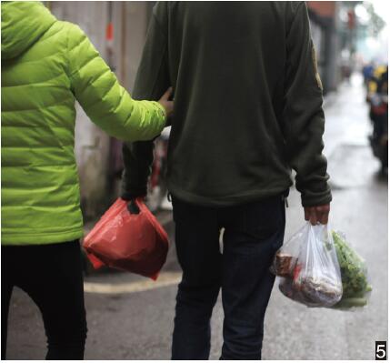 5.天空中下着雨,丈夫杜永杰提着买好的食材与程浪一起回家。