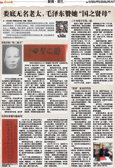 ·娄底无名老太,毛泽东赞她“国之贤母”