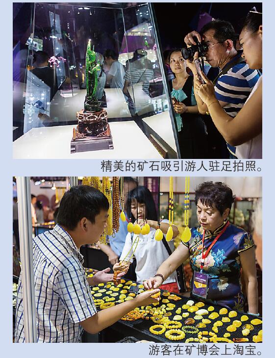游客们不仅看的过瘾,买的更是停不下来。来自世界各地的展商为游客们带来了各种令人眼花缭乱的奇珍异宝,不管是珠宝首饰还是奇石化石,男士和女士都找了他们掏空钱包的理由。游客向先生对记者展示了他的“成果”,三块美丽的矿晶原石被他170元拿下,围观游客们都觉得不可思议。向先生告诉记者,这是他第三次来矿博会,经验丰富的他知道哪里能淘到物美价廉的宝贝。