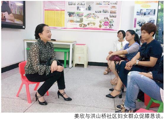 洪山桥社区妇女代表欧阳艳说,姜欣主席坐在她们中间倾听姐妹们的倾诉和分享,这让姐妹们感到“很惊喜”,“主席和我们面对面、心贴心的交流,让我们感觉到妇联组织确实是妇女们的‘娘家’。”