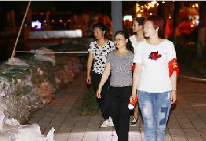 7月5日凌晨,湘江河开福寺路口段,开福区新河街道的干部职工与居民一道在河边巡防。湘江水位开始下降,但广大干部职工不敢丝毫懈怡放松,二十四小时轮流换岗值班巡防,确保河堤安全。